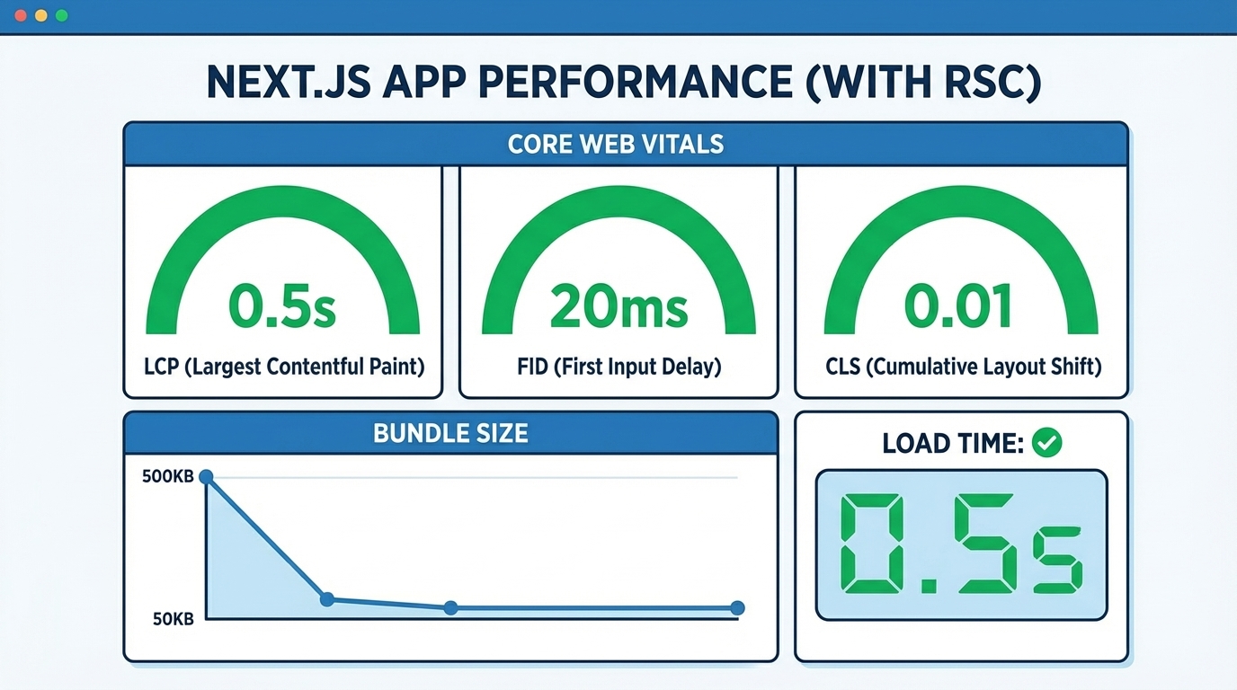 By reducing the amount of JavaScript the browser needs to parse and execute, Server Components significantly improve key performance metrics: